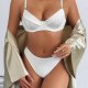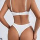 Simple yet striking, this lingerie duo showcases a softly textured fabric with a subtle vertical rib pattern. The bra offers supportive shaping with a deep V-neckline and adjustable straps, while the high-rise briefs provide full coverage with a flattering cut. The understated design makes it ideal for those who prefer minimalism with a touch of elegance.