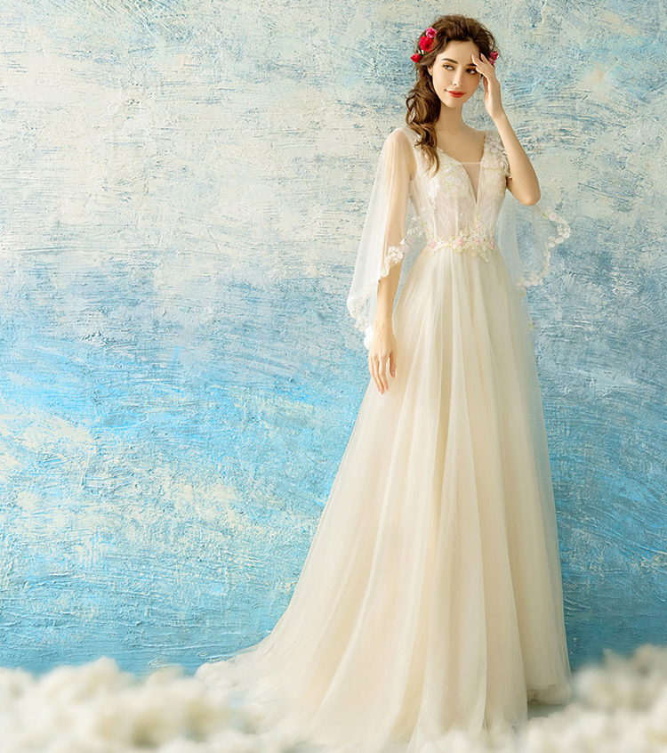 V-neck Tulle Lace Tails Homecoming Dress Evening Gown