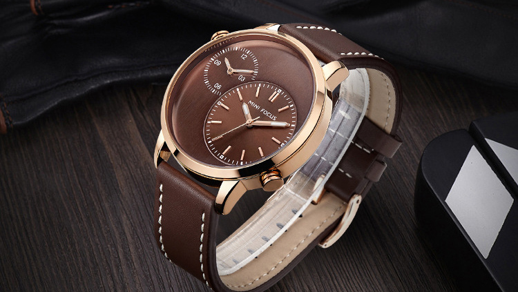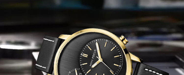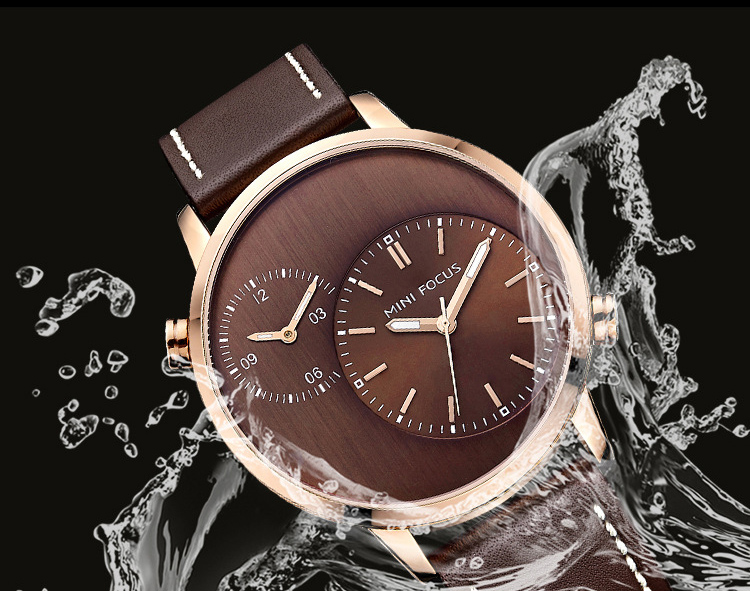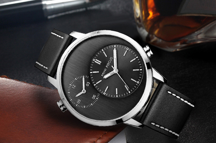Watch Dual Time Zone Large Face Watch Leather Band Analog Display Watch