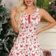 White Christmas Dress with Santa Print and Red Ruffle Hem