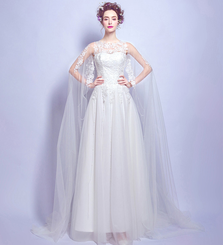White Fairy Style Soft Tulle Tiered Applique Bridal Gown