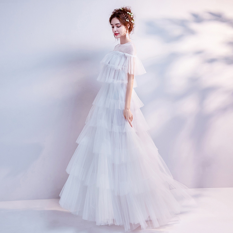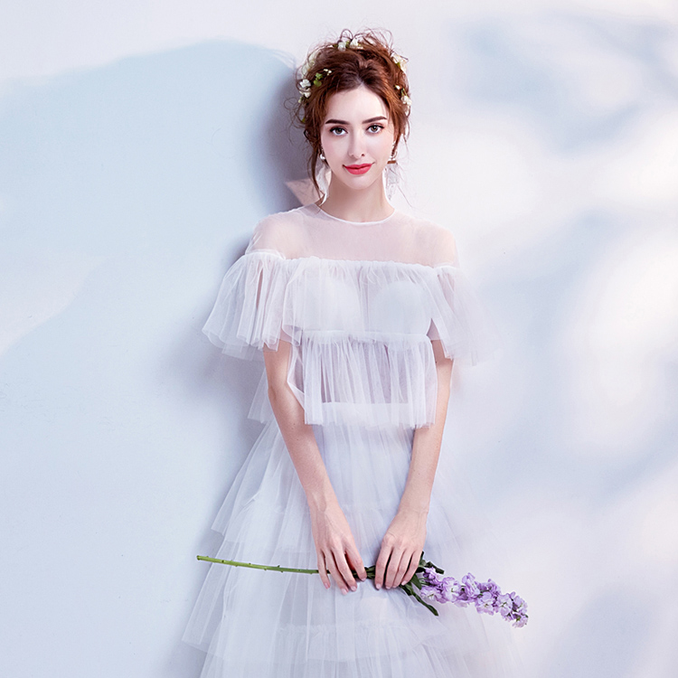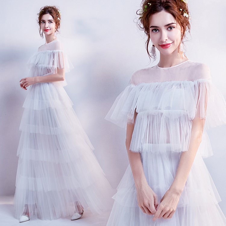 White Round Neck Lace Evening Dress