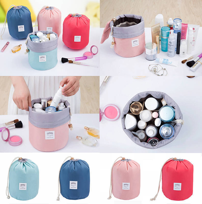 Women’s Barrel Shaped Cosmetic Makeup Organizer Bag for Travellers