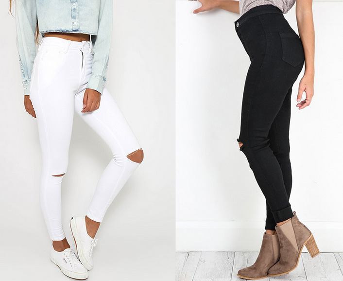 Skinny jeans slim your sides, making your waistline look smaller instantly