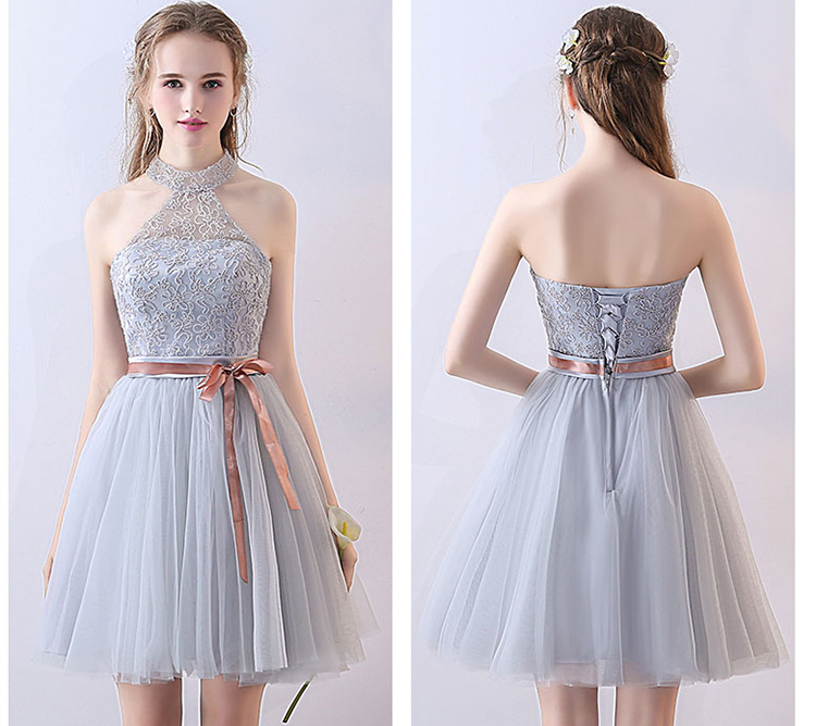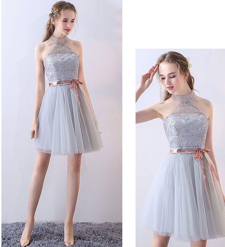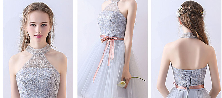 Women's Elegant Embroidery Hanging Neck Lace Evening Gowns