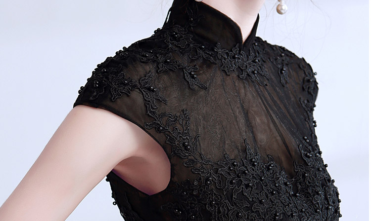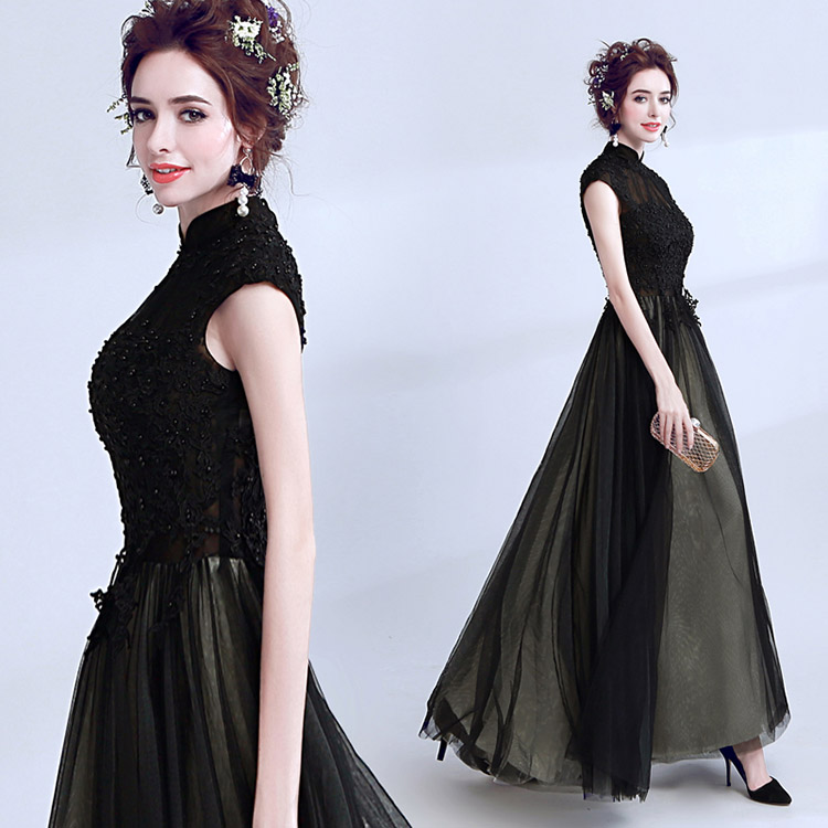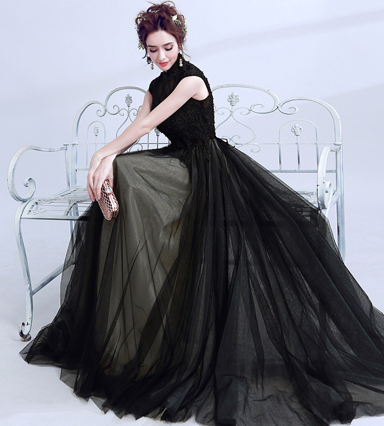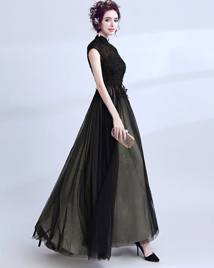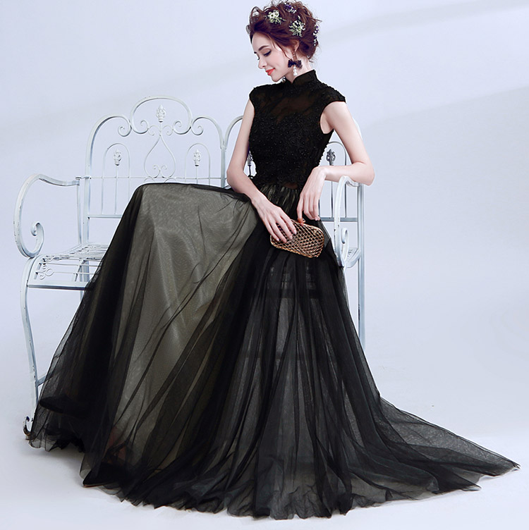 Women's Elegant Lace Beads Tulle Evening Prom Gowns