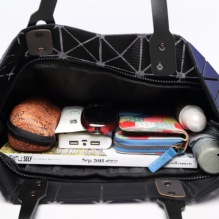 Women's Fashion Geometric Rhombic Tote Bag Glossy PU Leather Shoulder Bag Top-handle Handbags