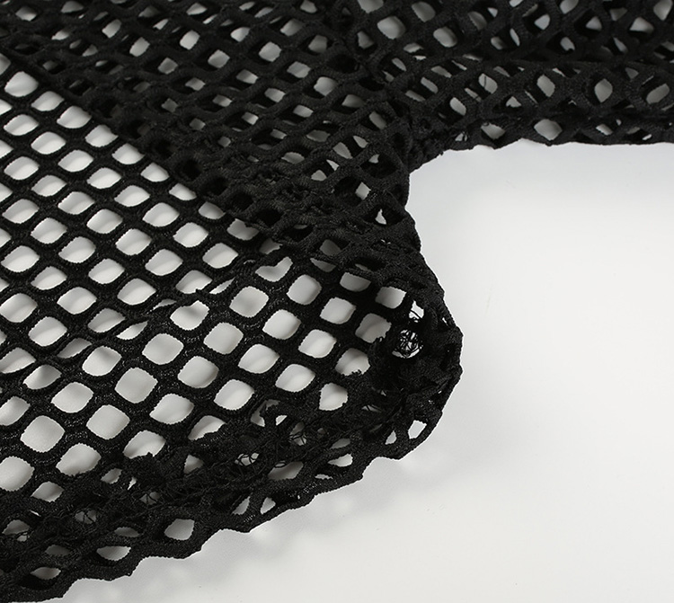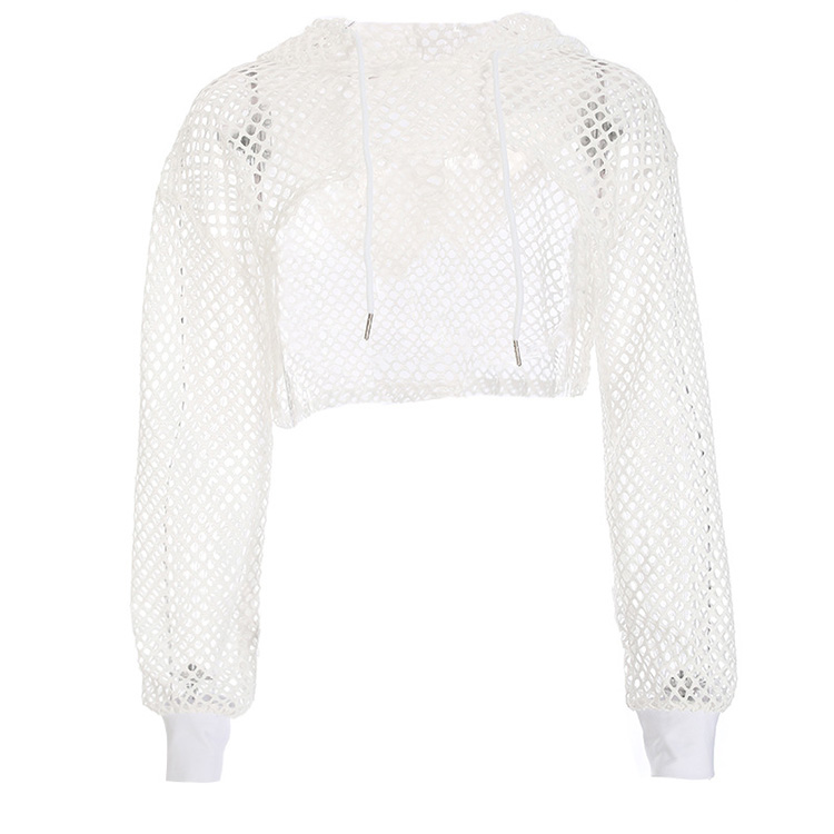 Women's Fishnet Hollow Out Long Sleeve Crop Top Hooded Mesh Shirts