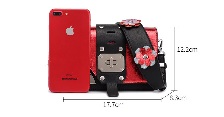 Size: (L)17.7cm, (w)8.3cm, (H)12.2cm. Shoulder strap is adjustable.