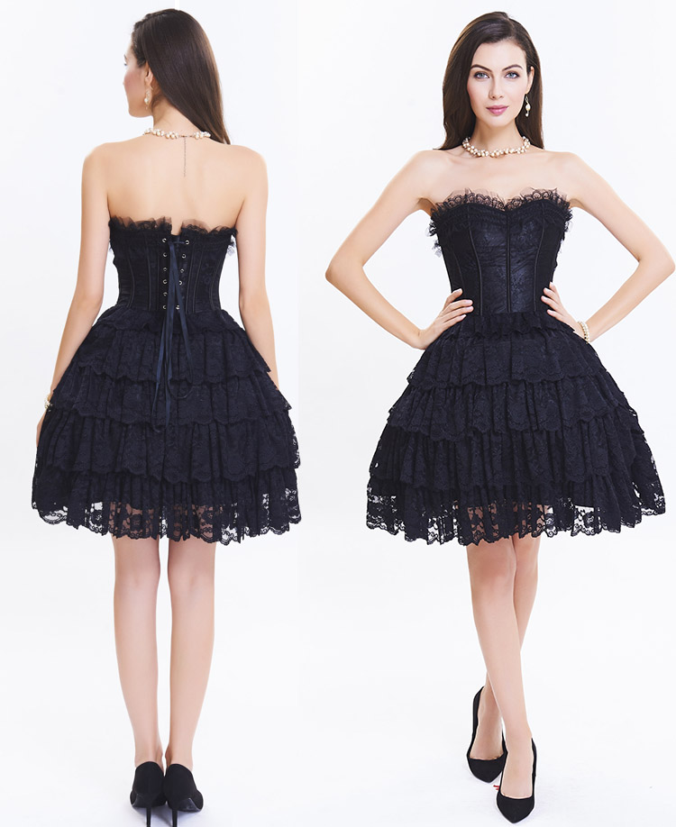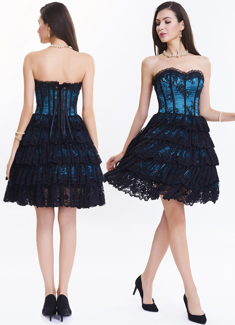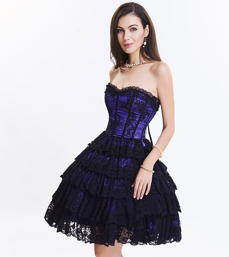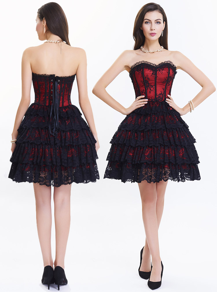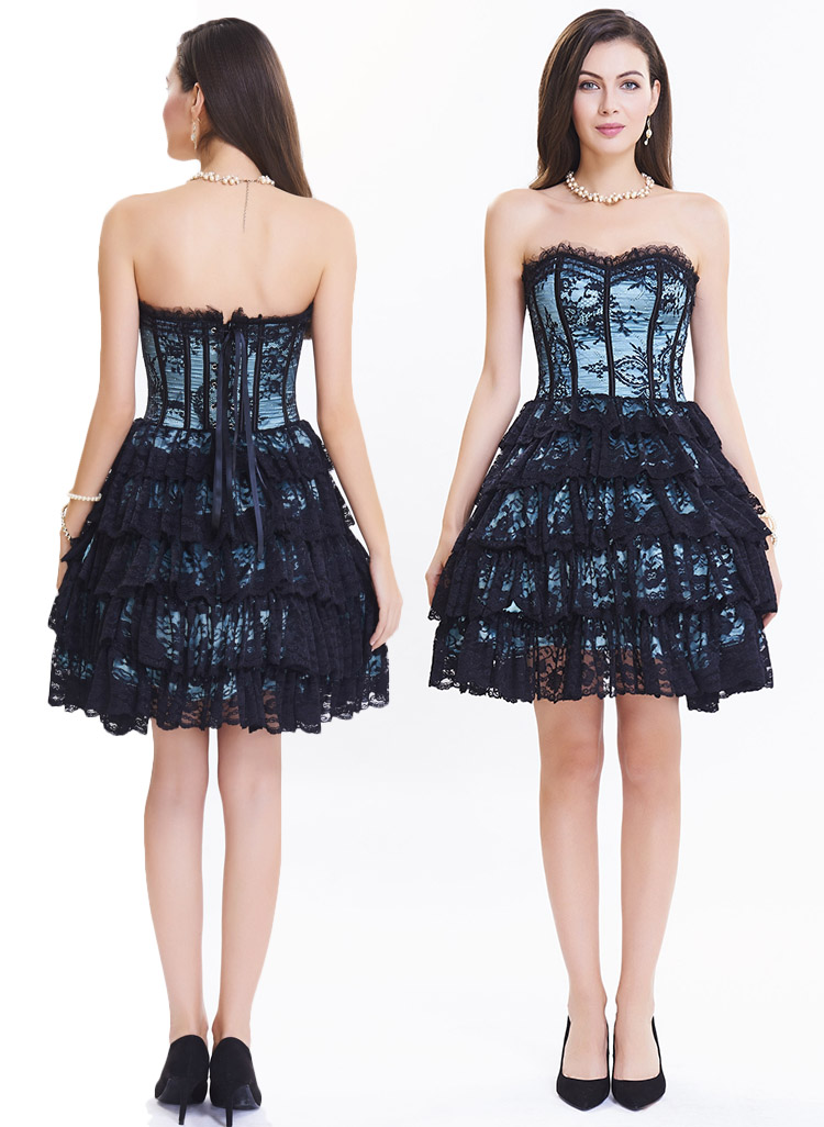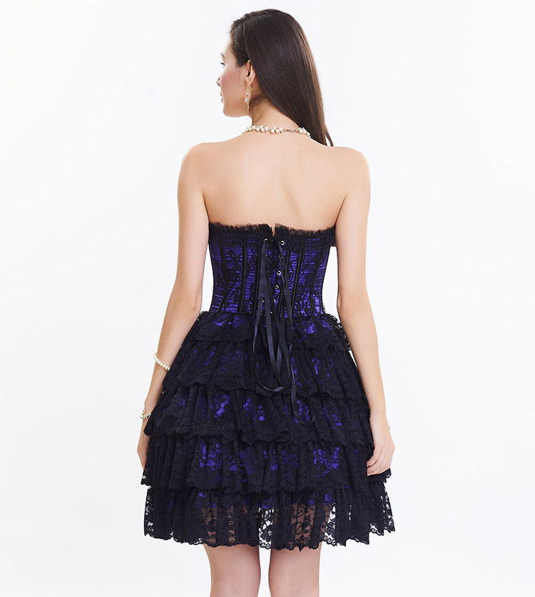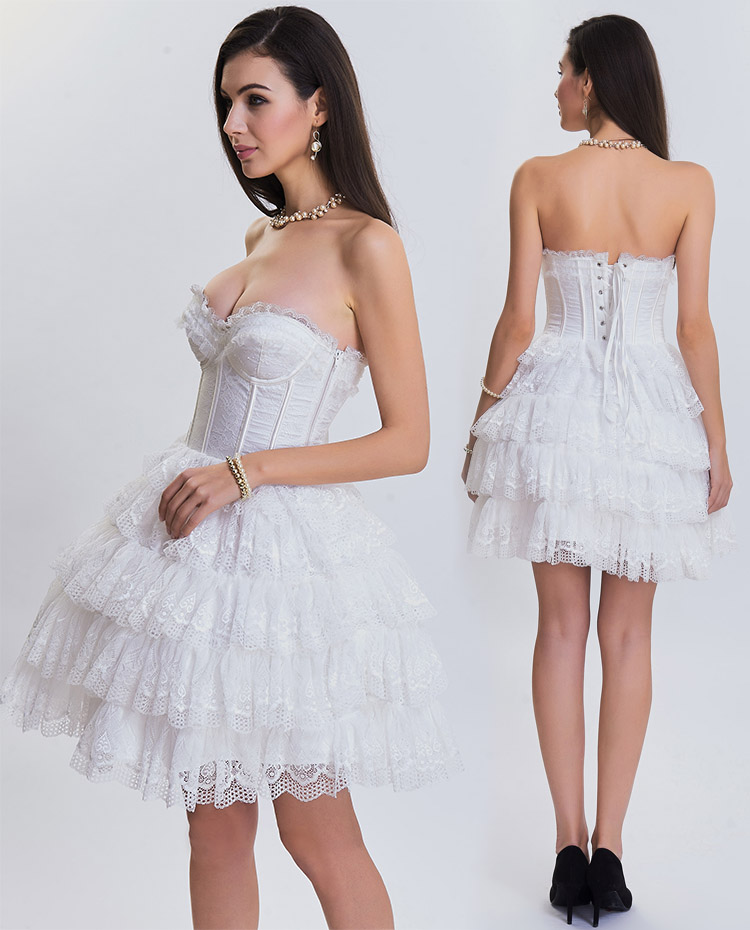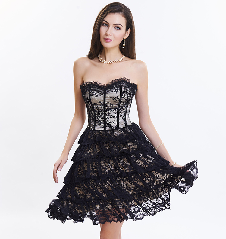 Women's Lace Corset Dress Strapless Sexy Bustier Dress