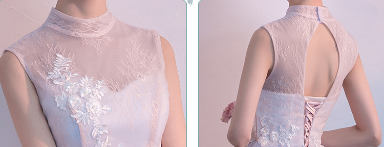 Women's Lace Sleeveless Floral Embroidery Evening Dress