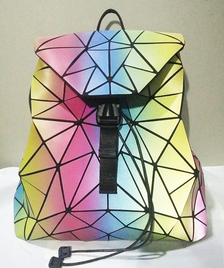 Night luminous: Geometric backpack for girls women mens, rainbow shinning effect, the colors change depending on the light in the evening. NOTE: It's not glowing itself, only shining in