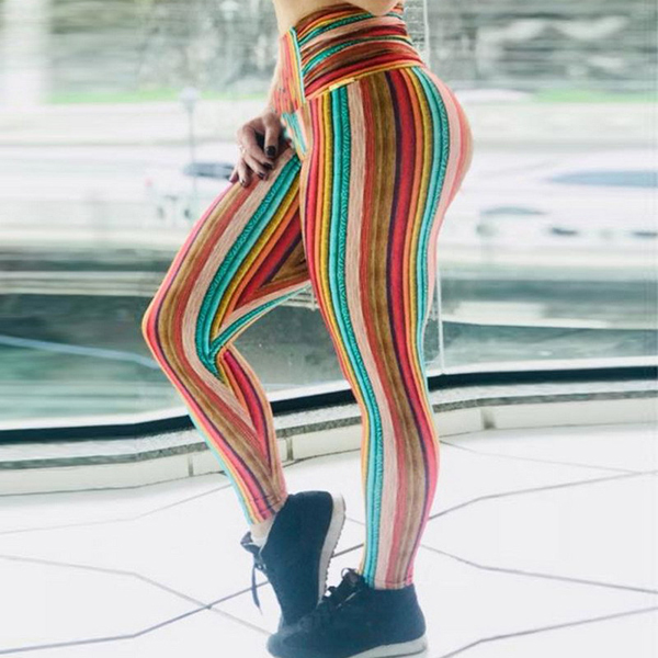 • Features: Long Compression Pants, High Waisted,Butt Lift, Tight, Snug Fit,Fashion Rainbow Pattern Print.