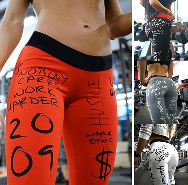 Women's Letter Print High Waist Yoga Pants Sports Athletic Workout Leggings