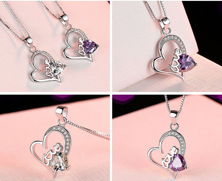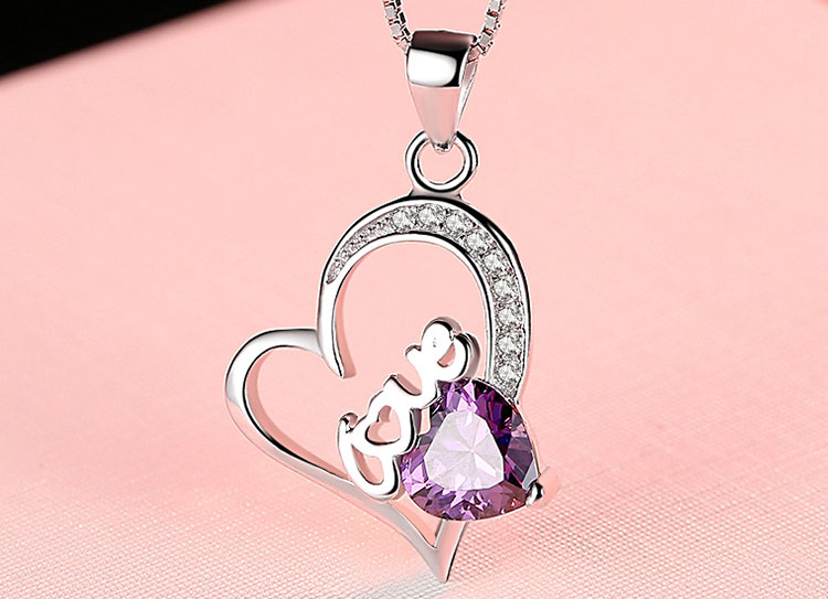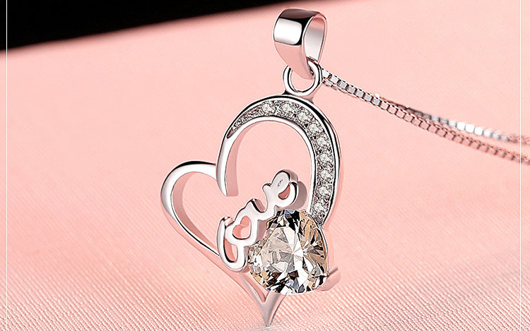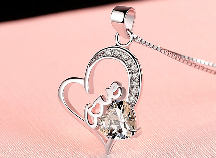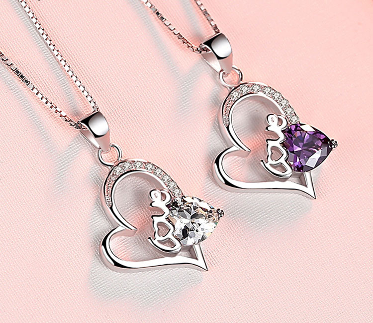 Women's Necklace Crystals Heart Shaped Pendant Pave