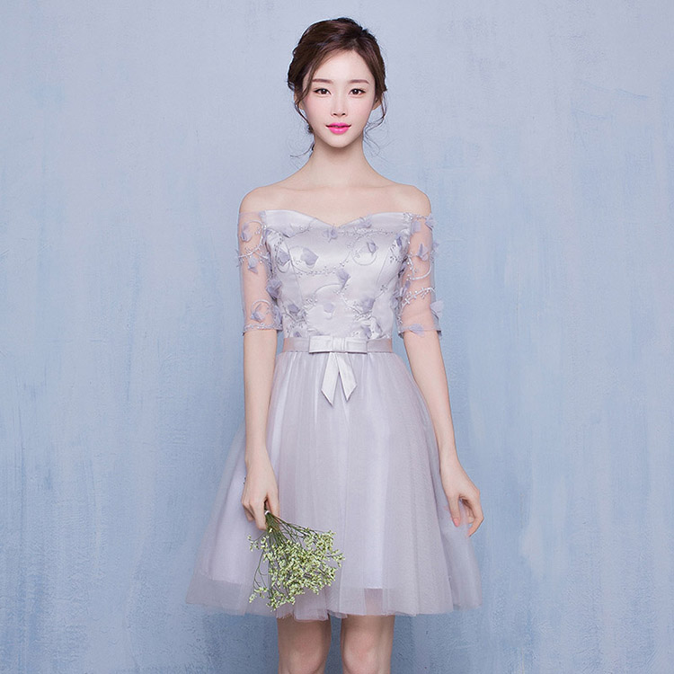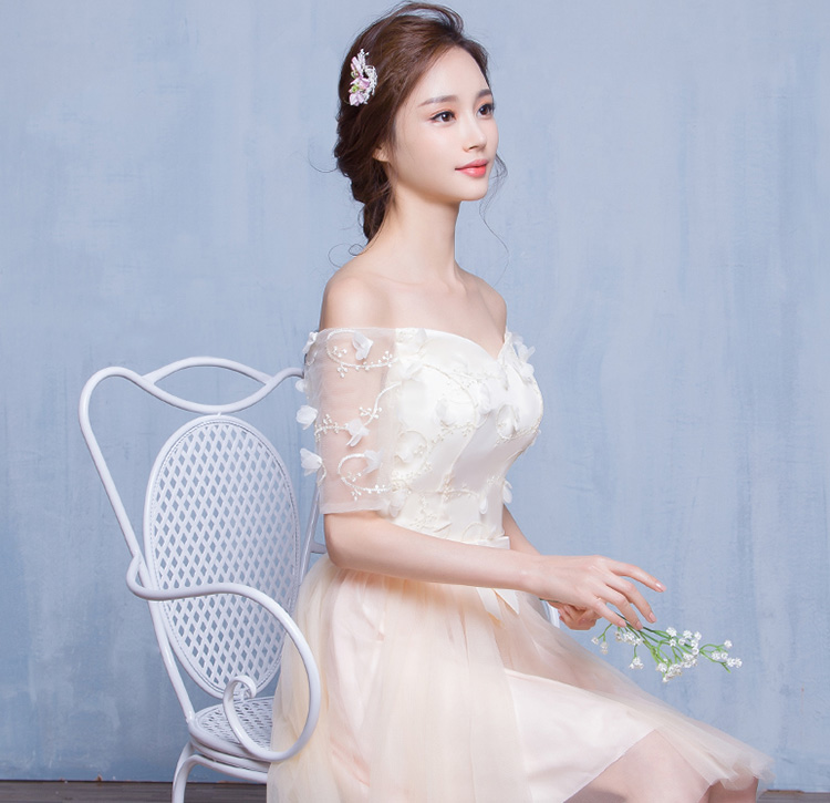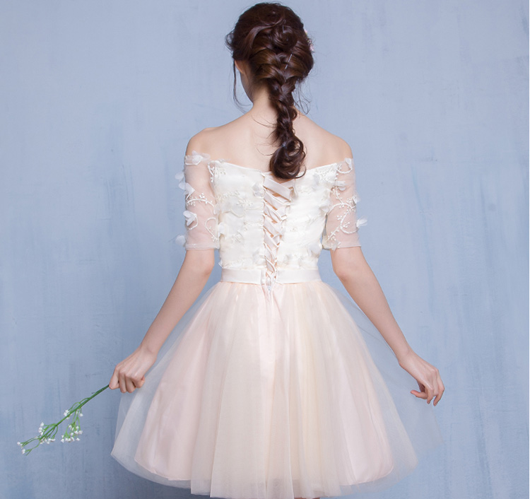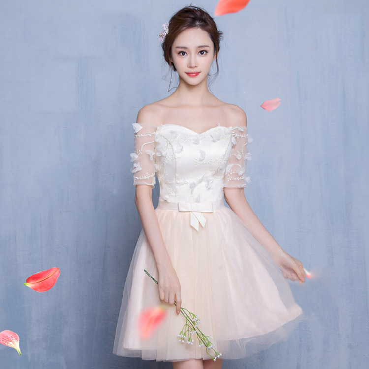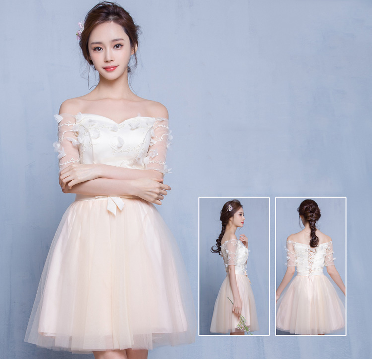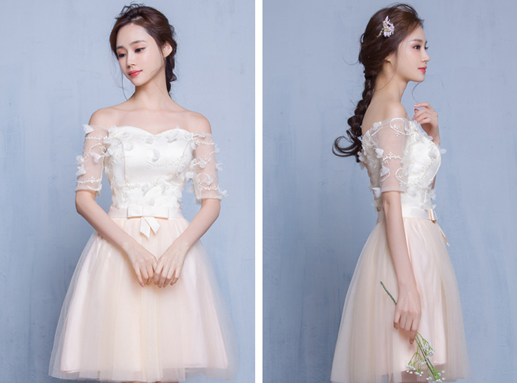 Women's Off the Shoulders Lace Sleeves Short Evening Gown Cocktail Dress