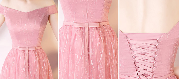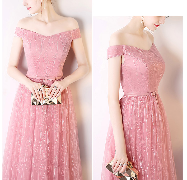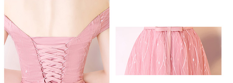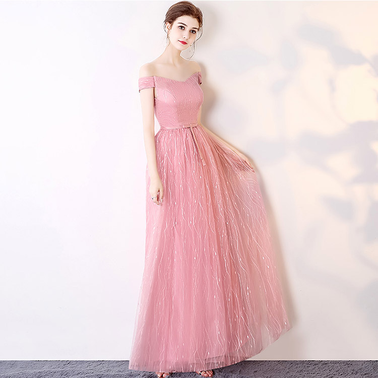 Women's Pink Sexy Jacquard Off The Shoulder Lace Long Evening Dress