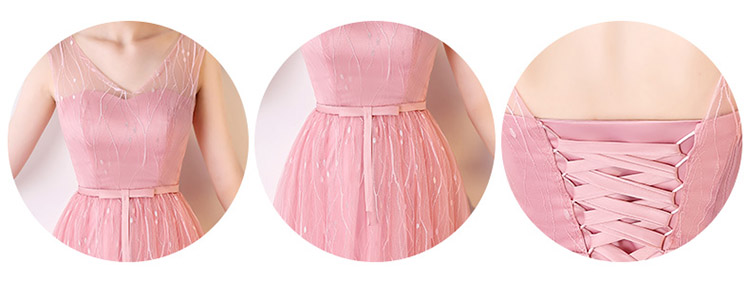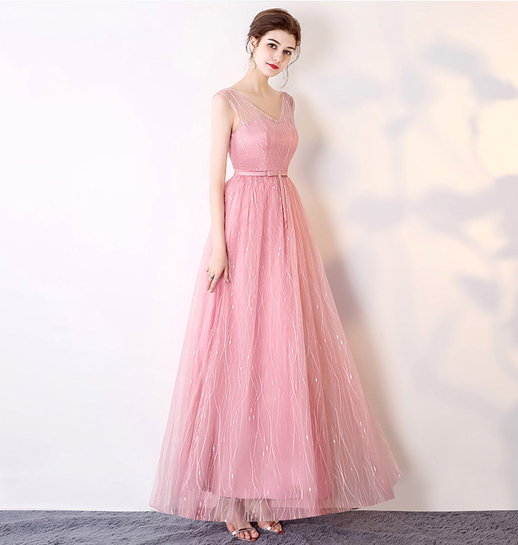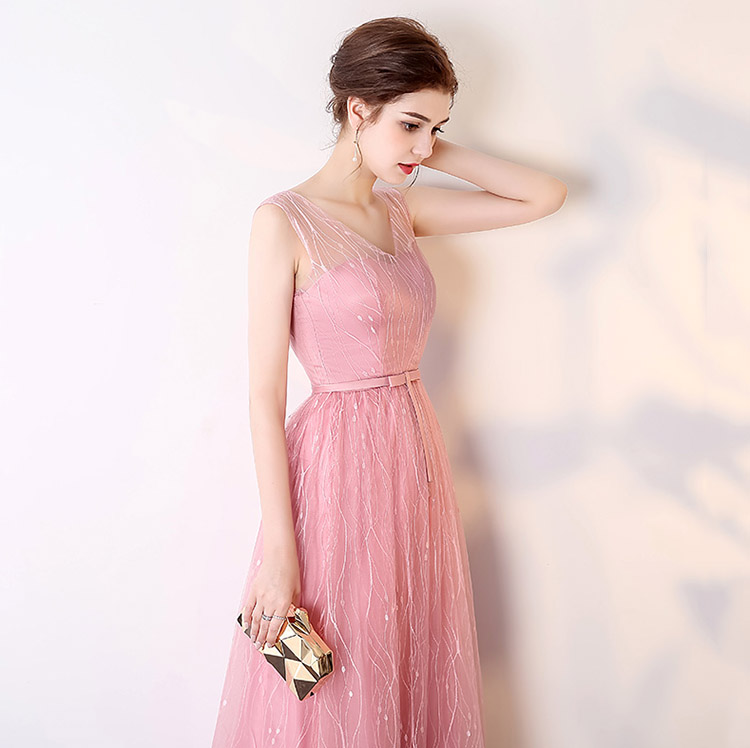 Women's Pink Sexy V-Neck Jacquard Lace Long Evening Dress