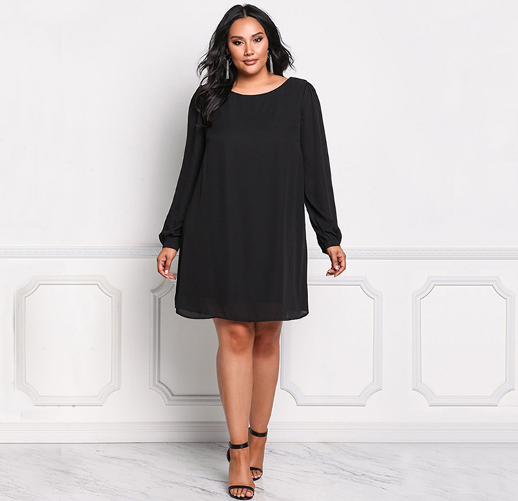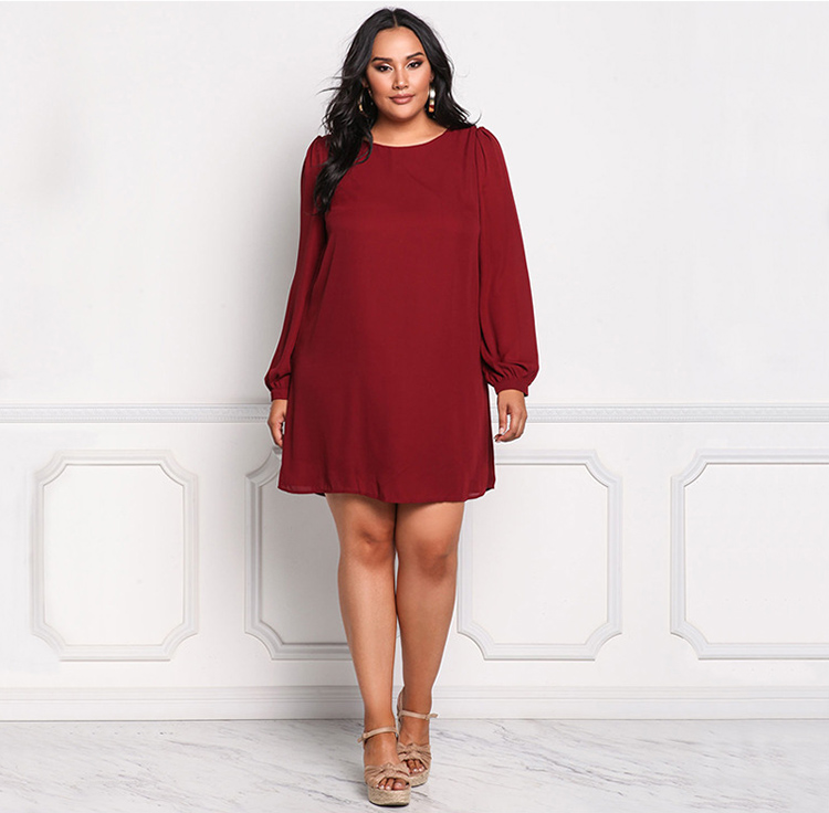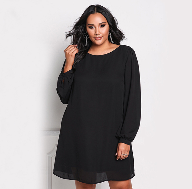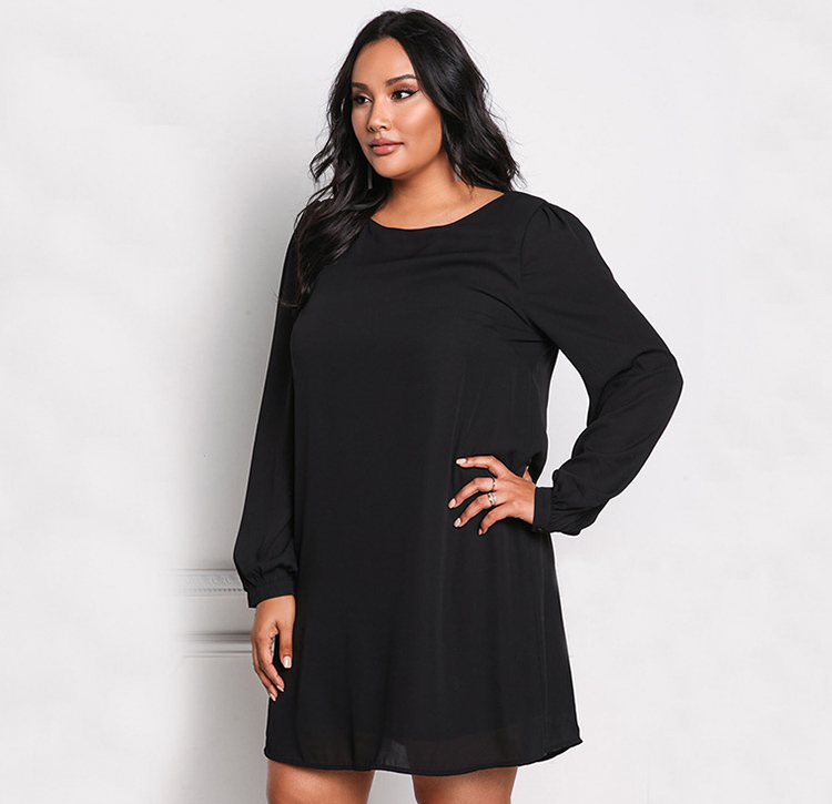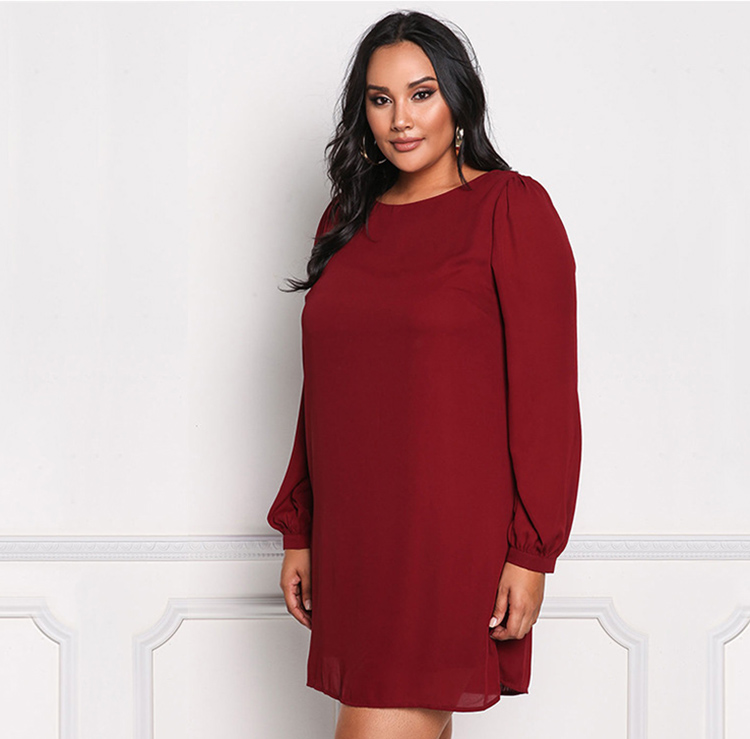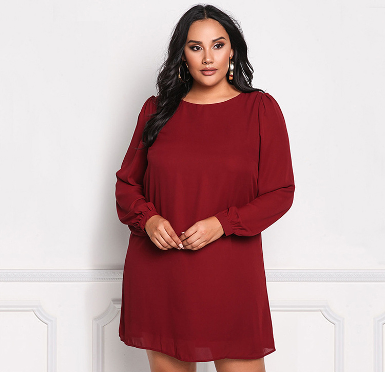 Women's Plus Size Round Neck Long Sleeve Elegant Dress