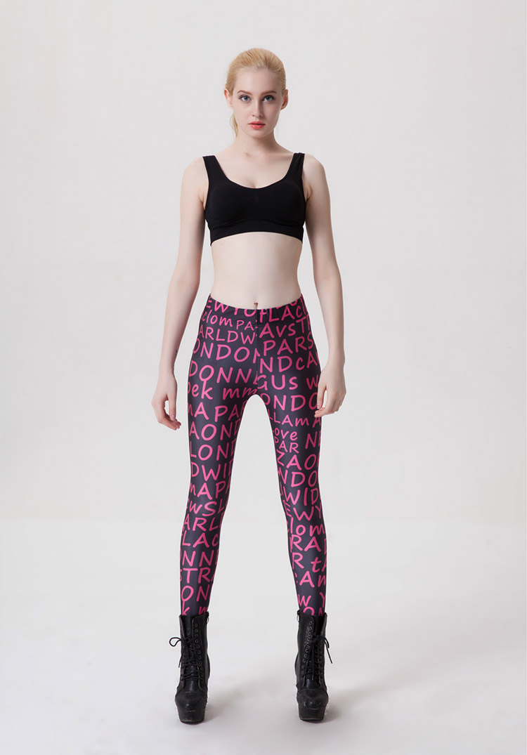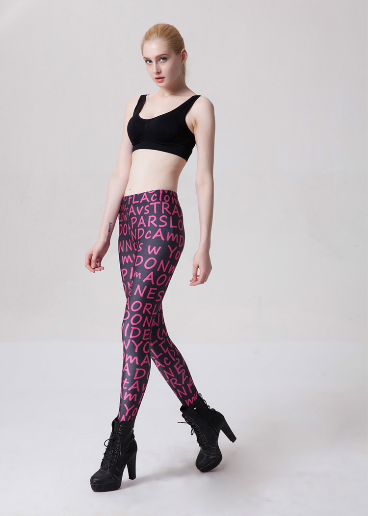 Women's Printed Letter Fitness Leggings Tight Slim Yoga Pants