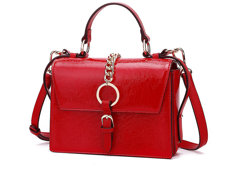 Women's PU Leather Metal Chain Decoration Shoulder Bag Tote Handbag
