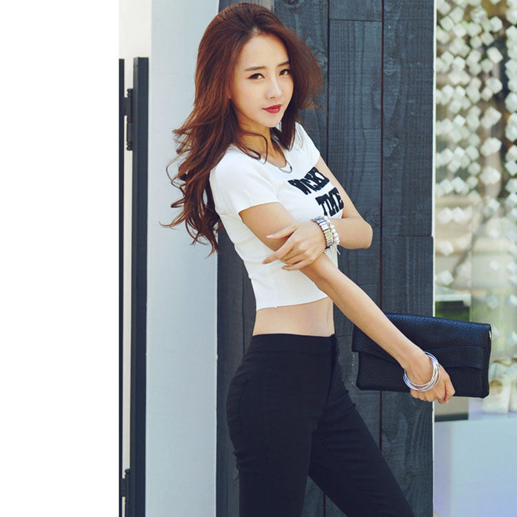 Women's Round neck Slim Short Style Letter Print Short Sleeve T-shirt