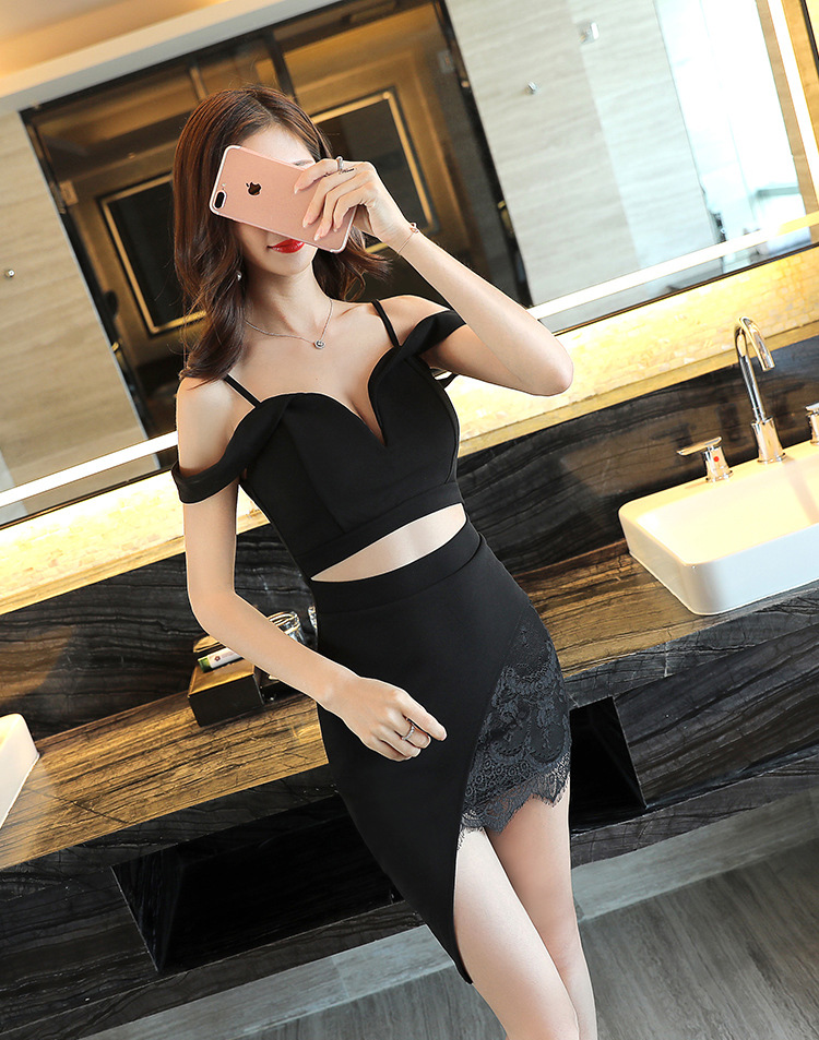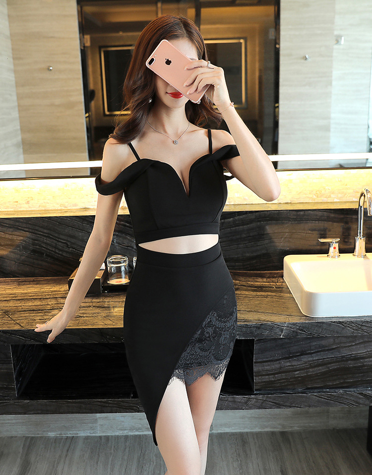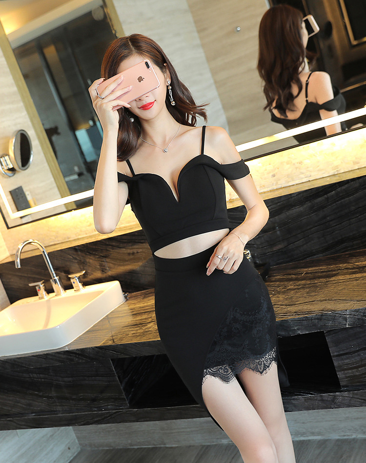 Women's Sexy Cold Shoulder V Neck Bodycon Dress