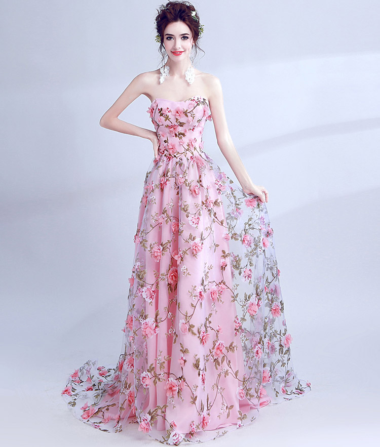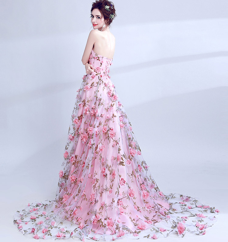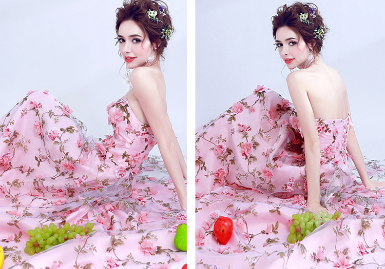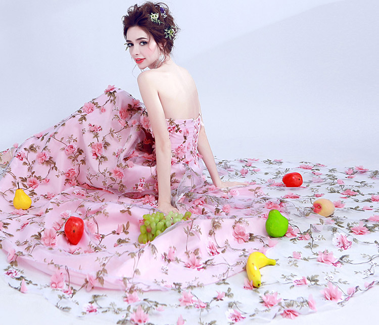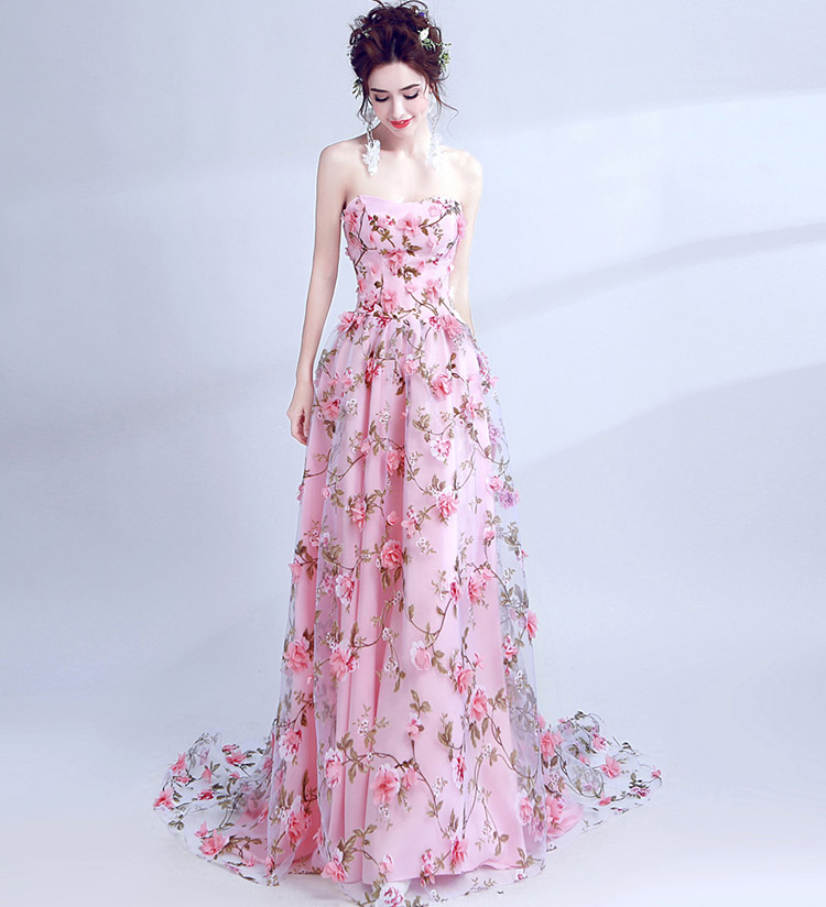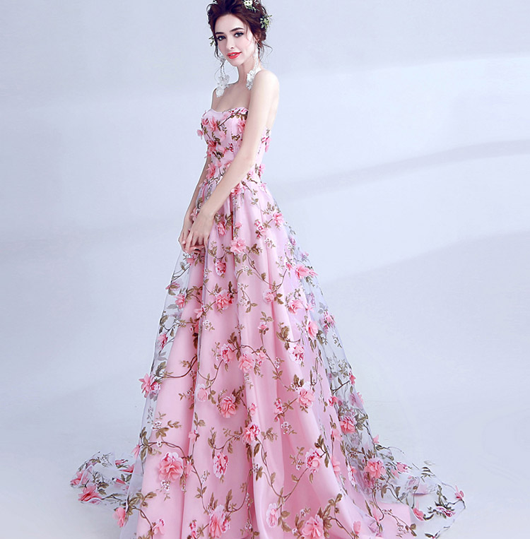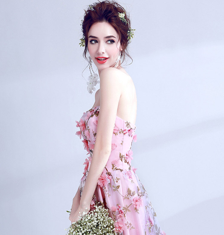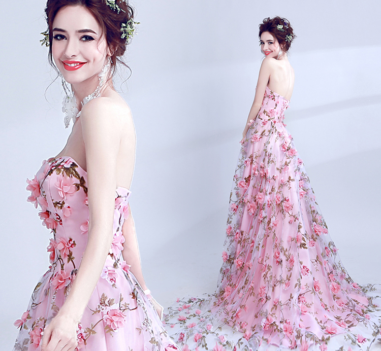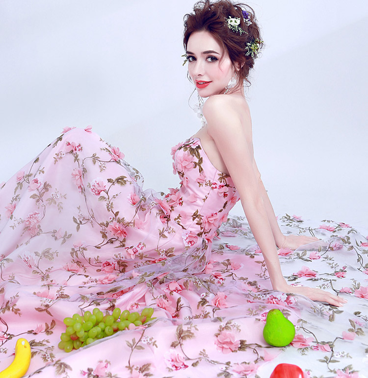 Women's Sexy Lace Flowers Strapless Long Evening Dress