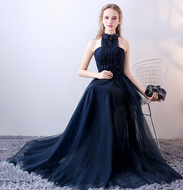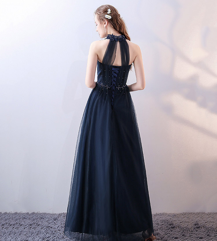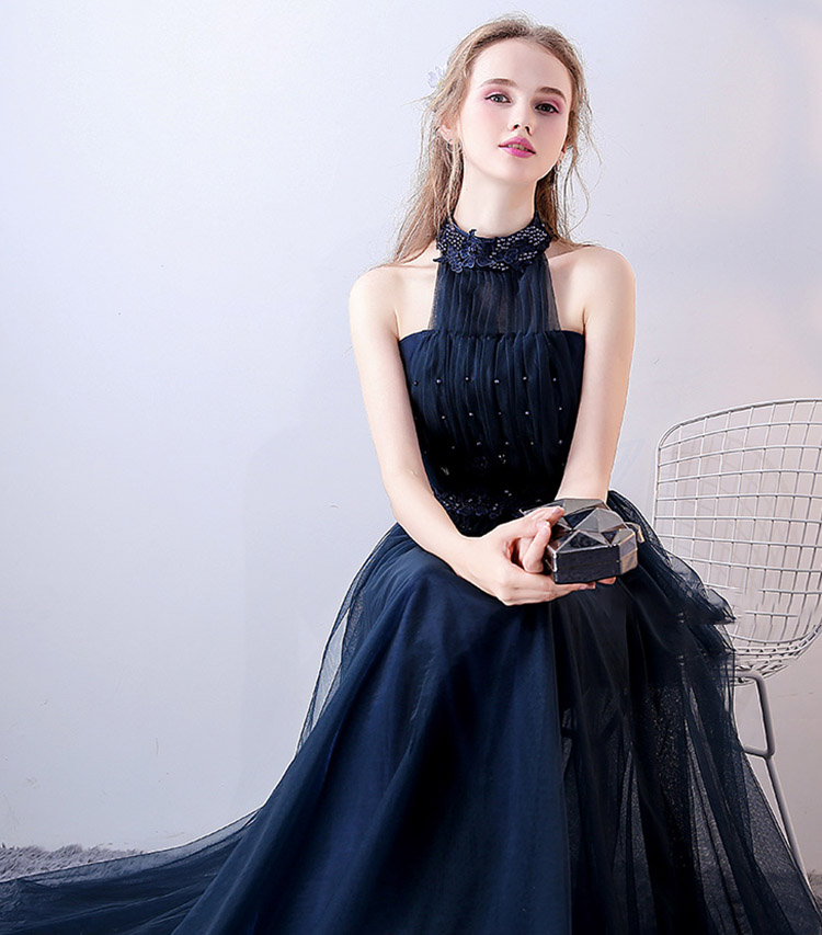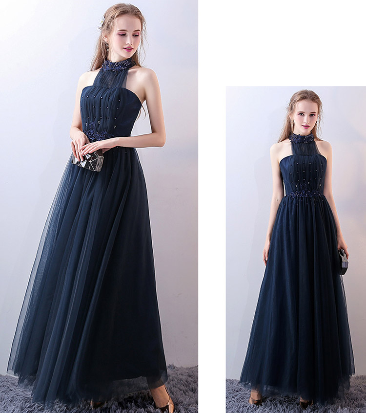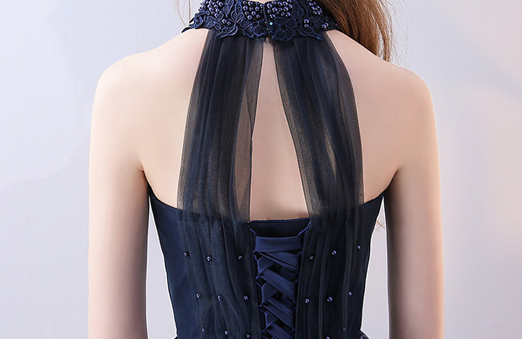 Women's Sexy Sleeveless Lace Bead Decoration Evening Gowns