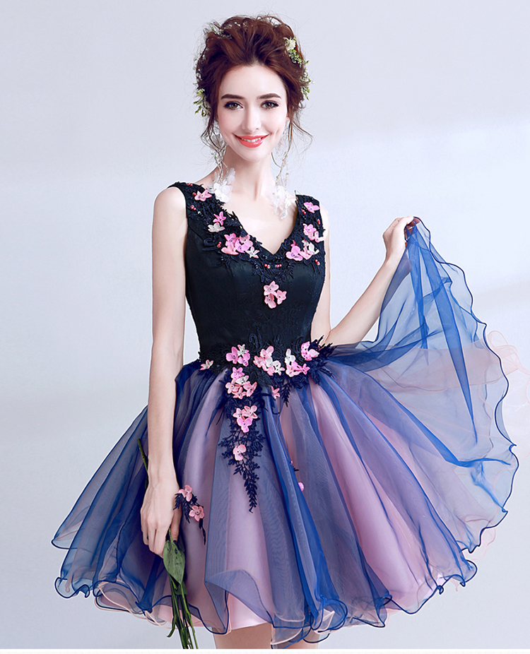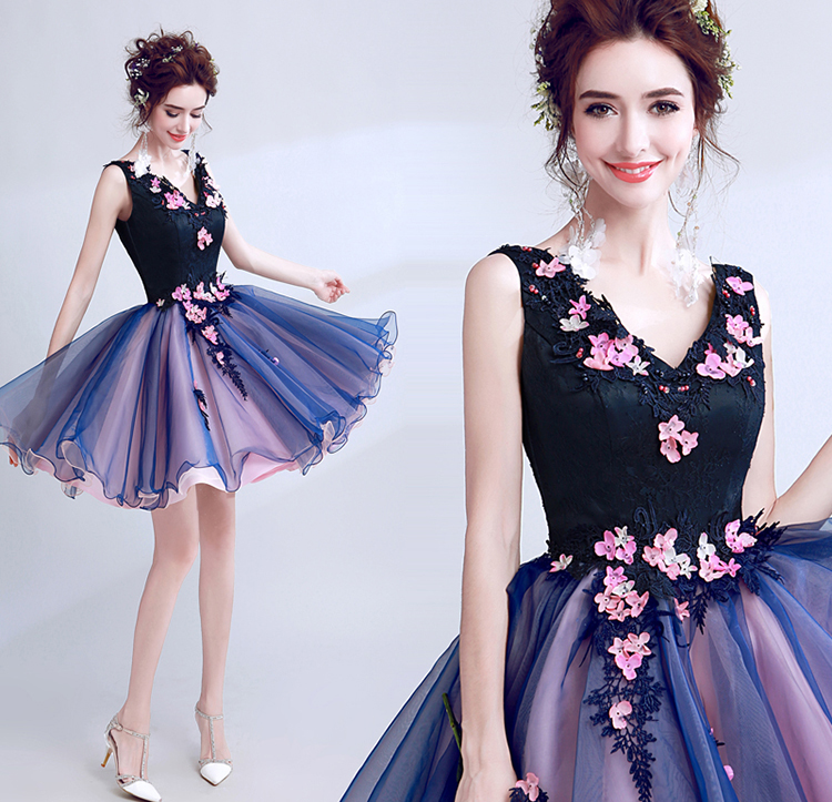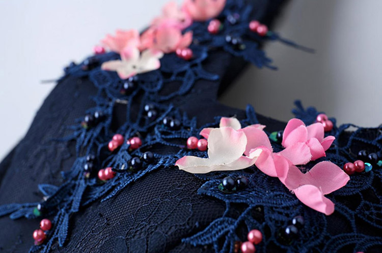 Women's Sexy V-neck Lace Embroidery Flowers Evening Gown Dress