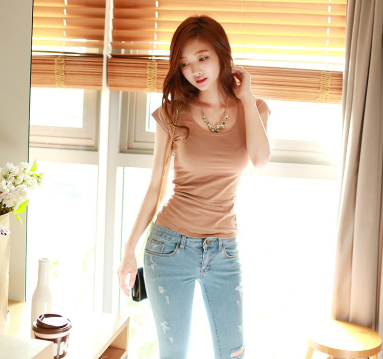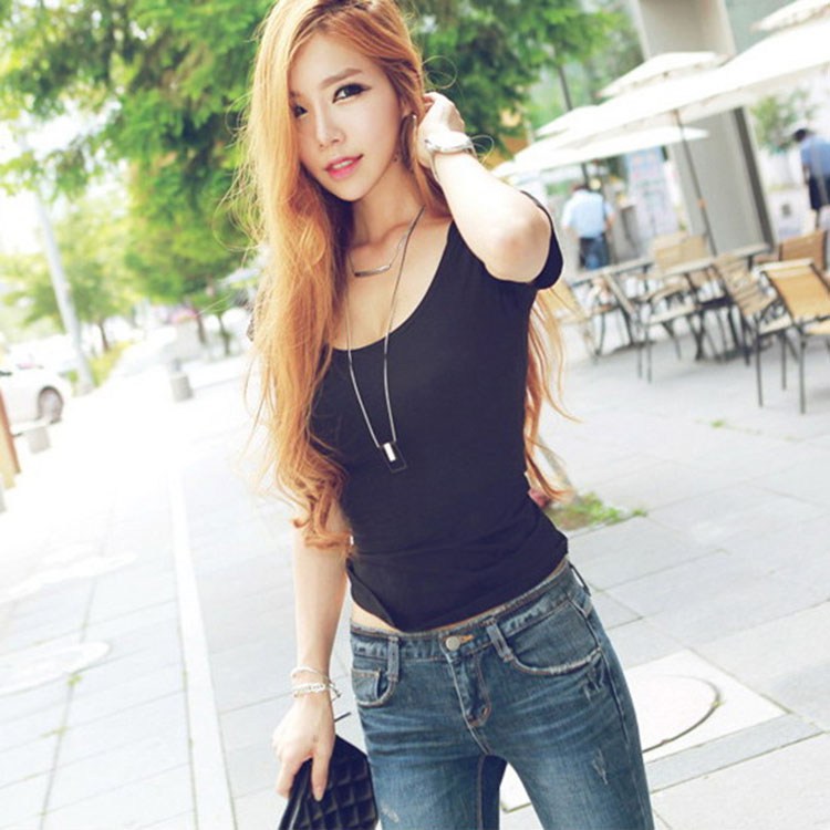 Women's Short Sleeves Hollow Casual Bandage T-shirt