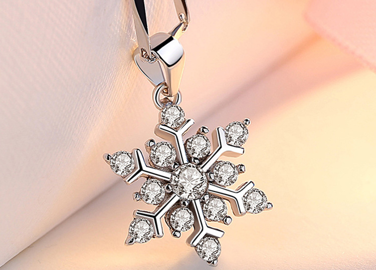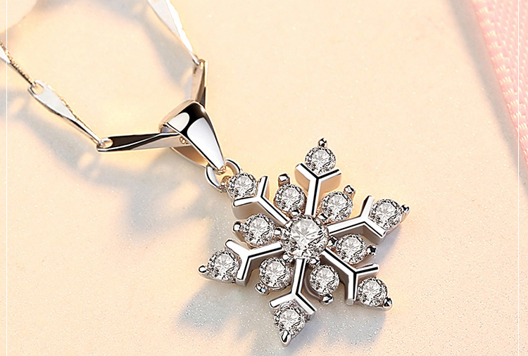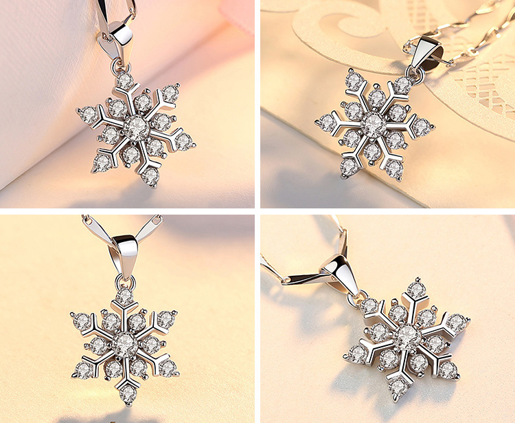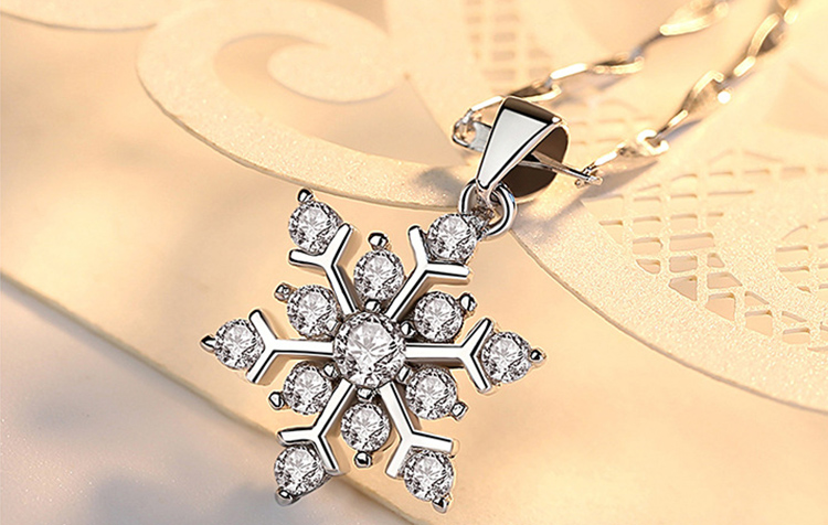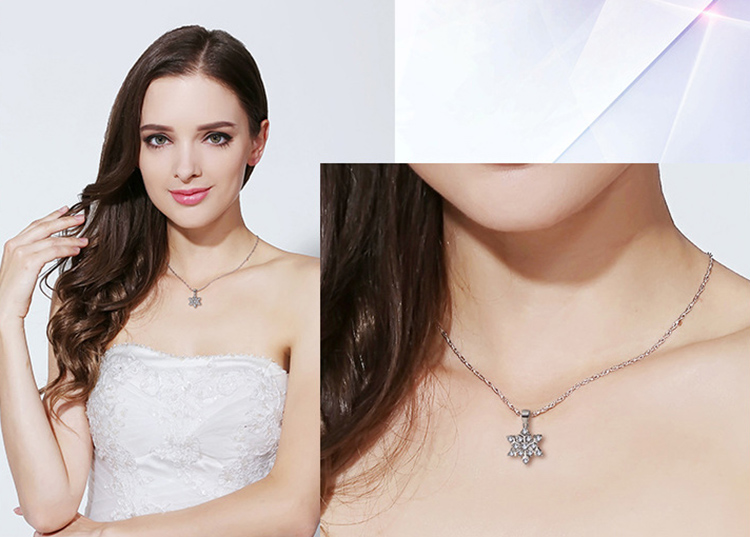 Women's Silver Crystal Snowflake Flower Fashion Pendant Necklace