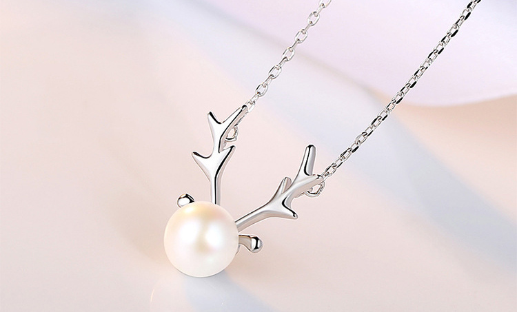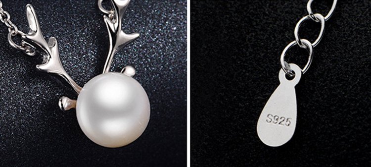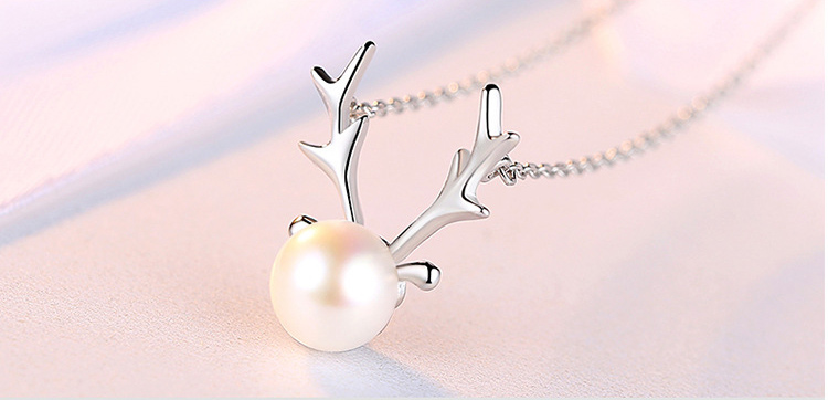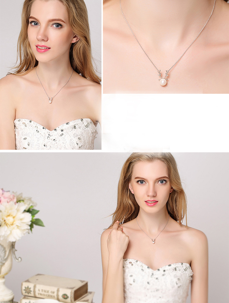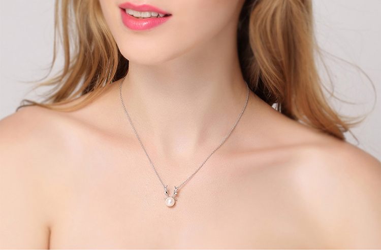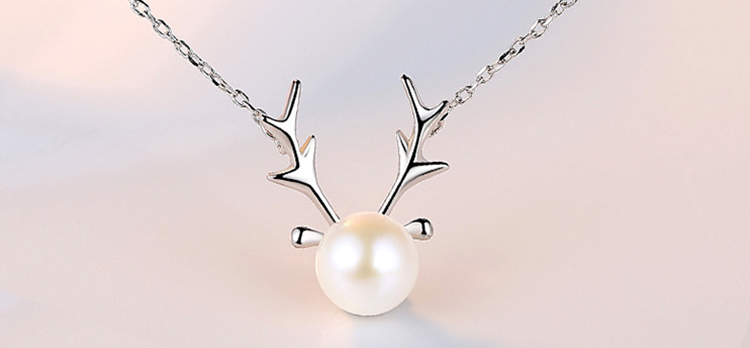 Women's Silver Pearl Elk Fashion Pendant Necklace