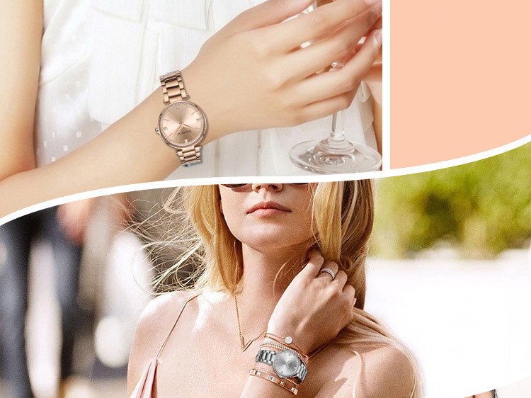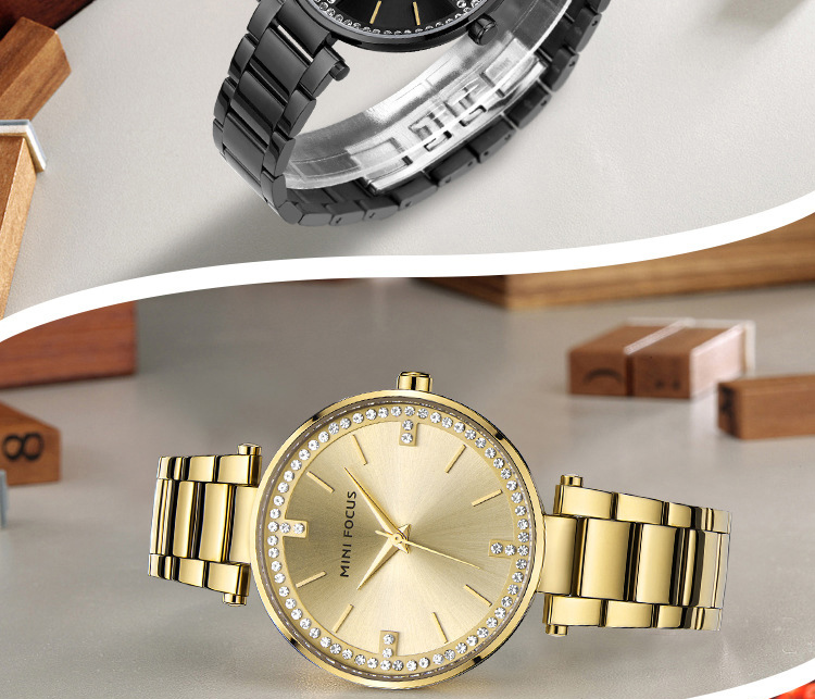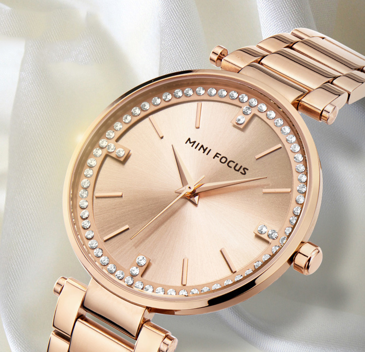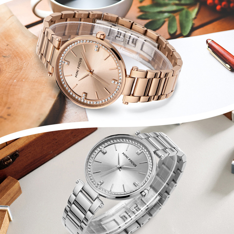 Women's Stainless Steel Band Crystal Waterproof Dial Wrist Watch