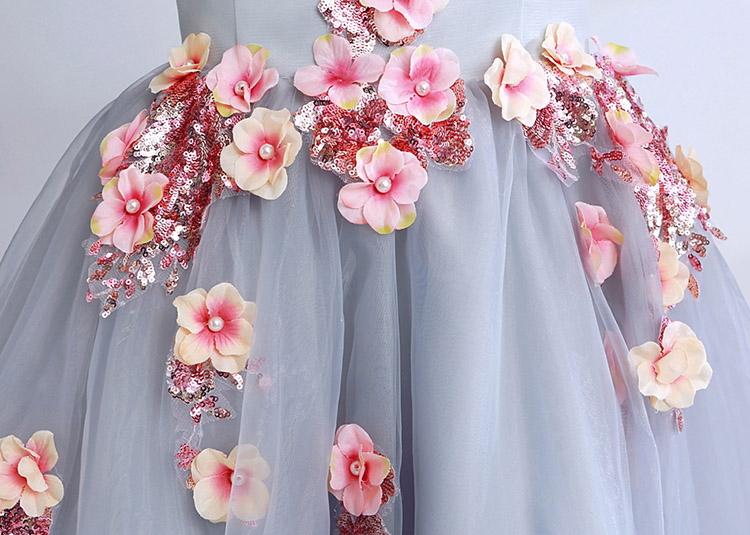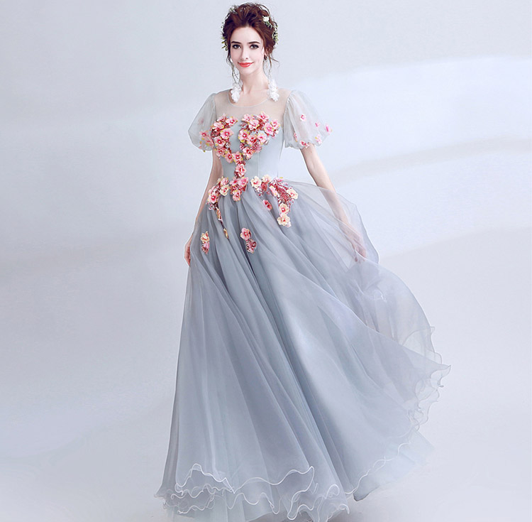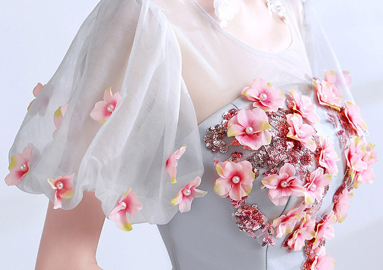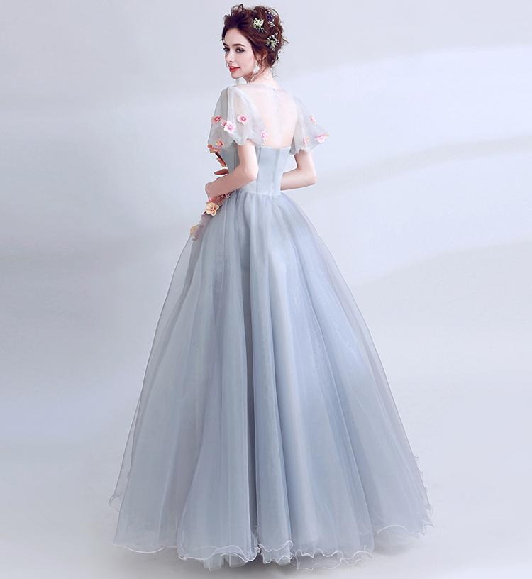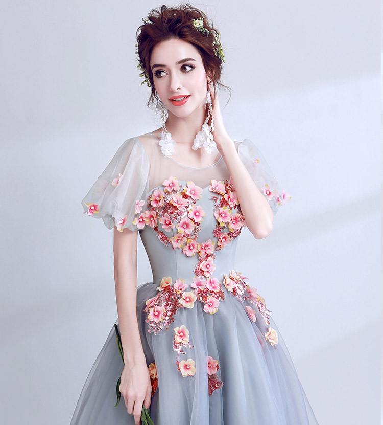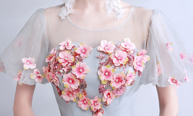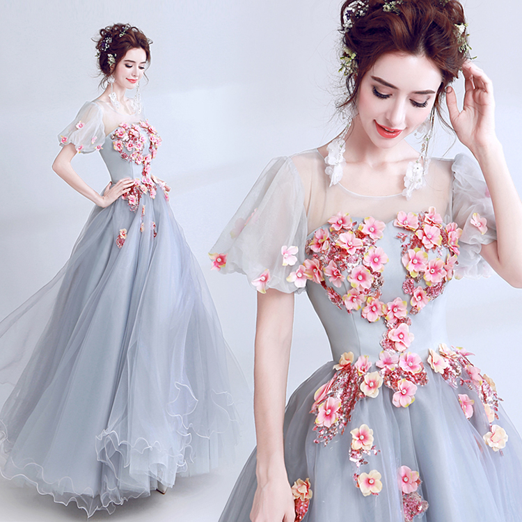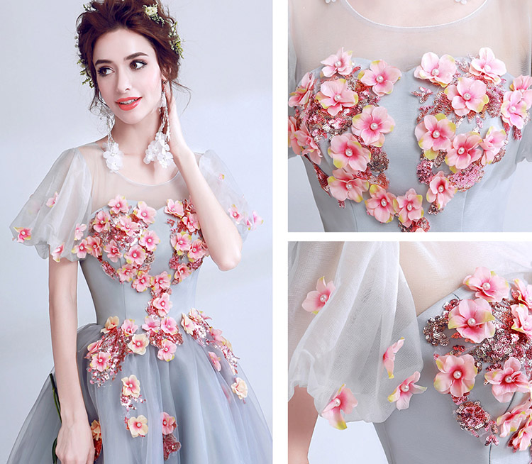 Women's Sweet Lace Flower Tulle Evening Prom Gowns