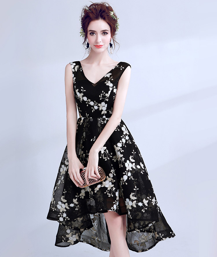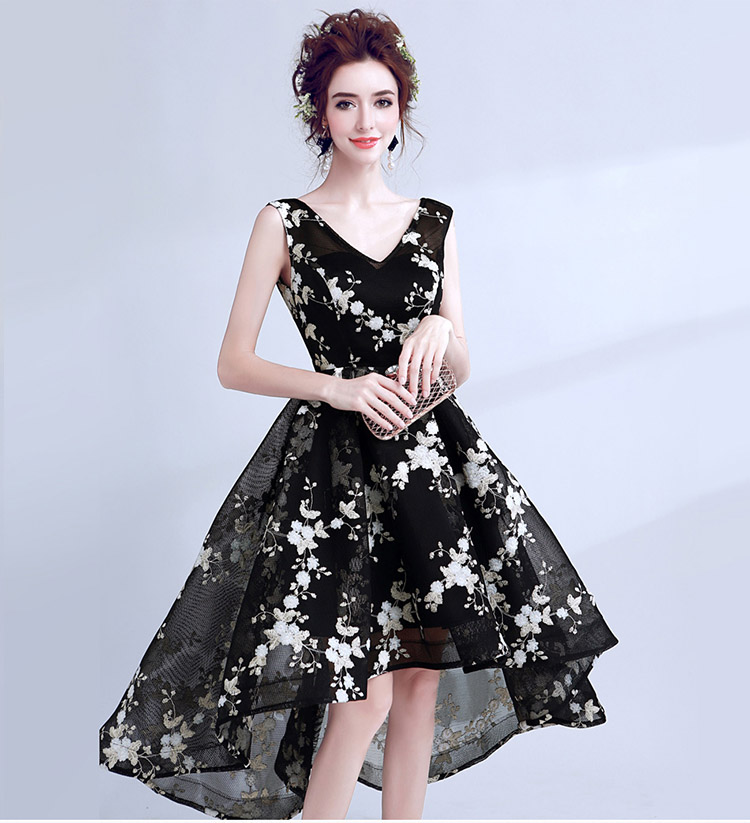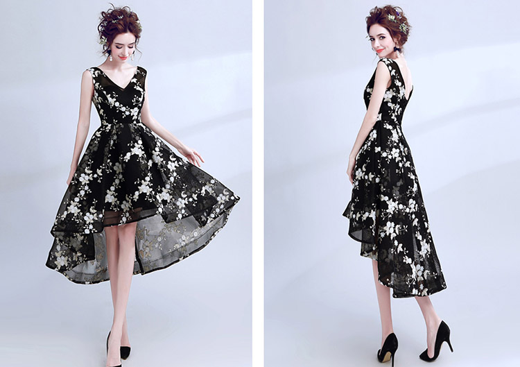 Women's V-neck Front Short Back Long Evening Gowns Cocktail Dress