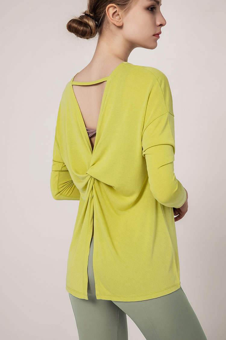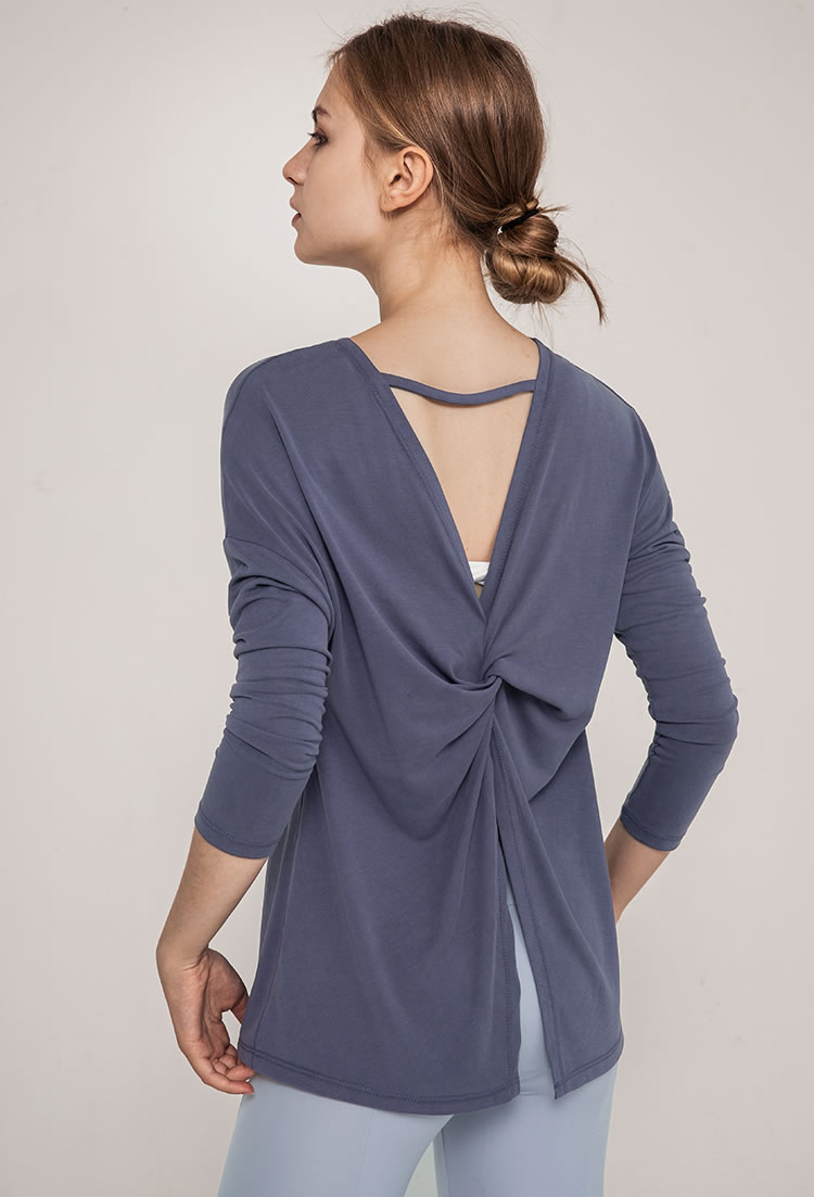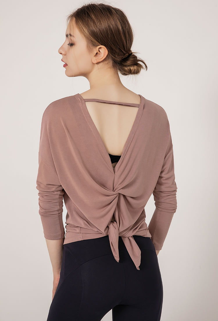 Design: Open back design with unique unique knot and a hem that can be tied which have two wearing methods. Tight sleeve can modify body type. Round collar is simple and elegant.