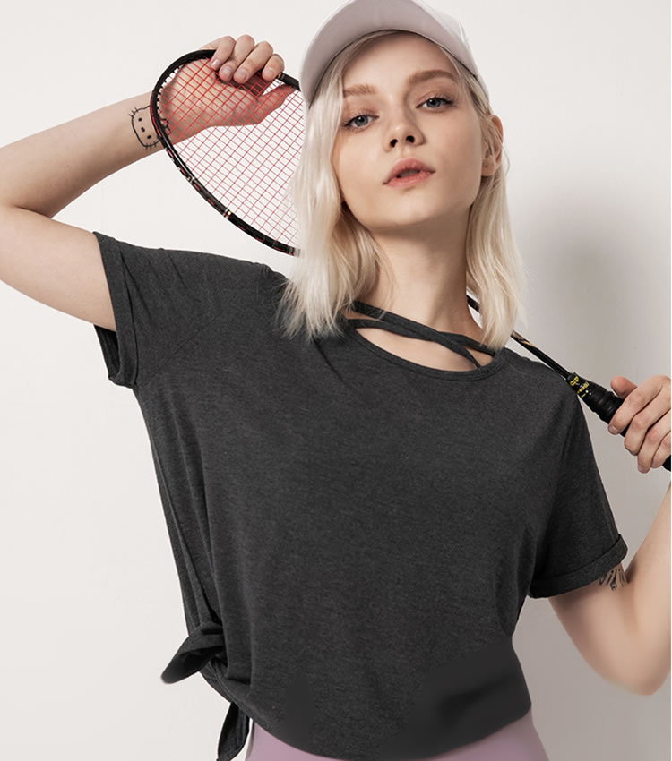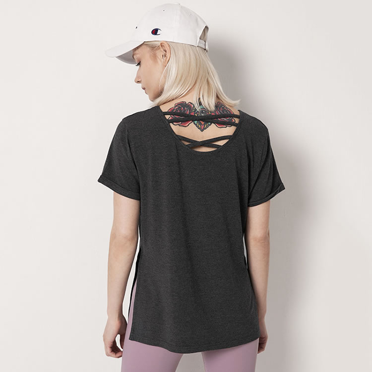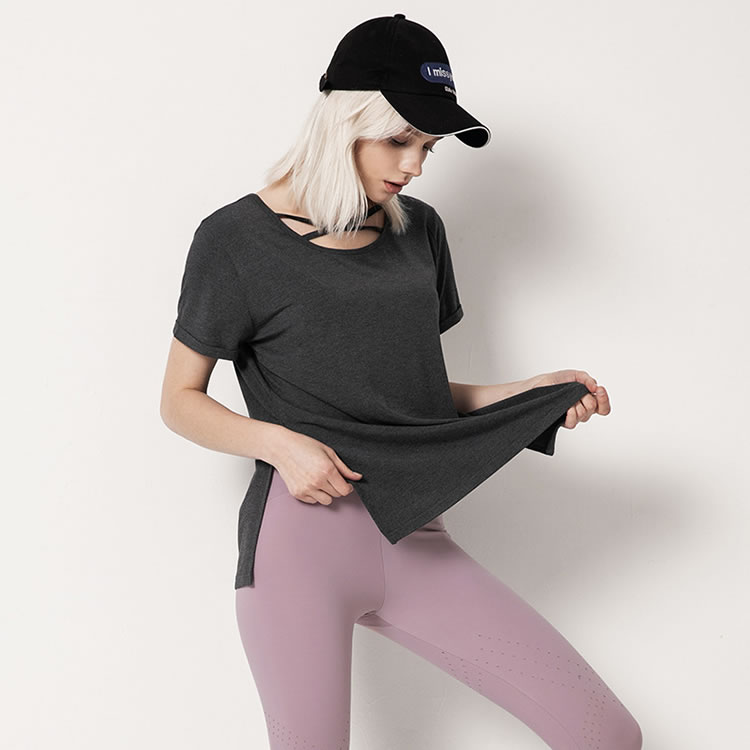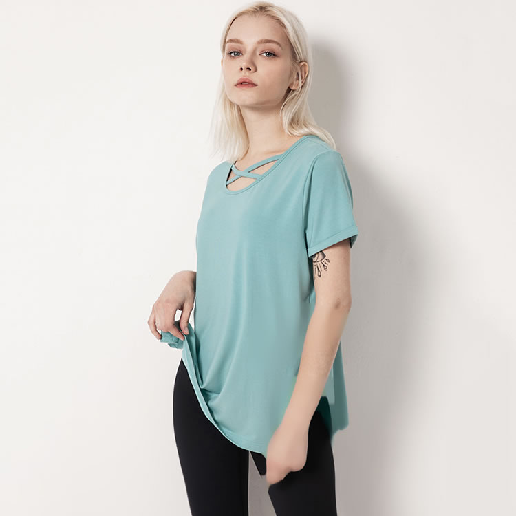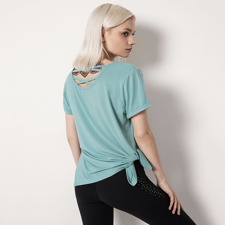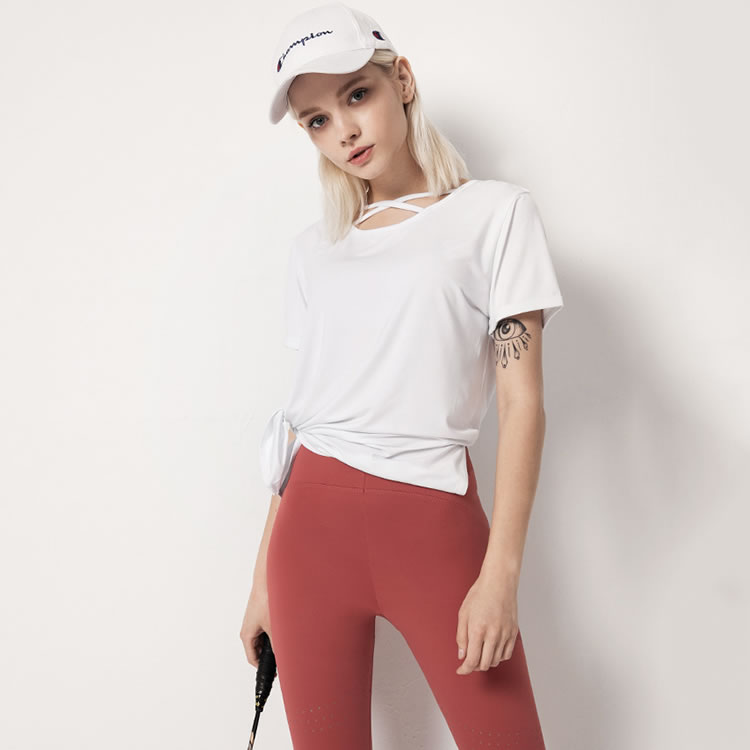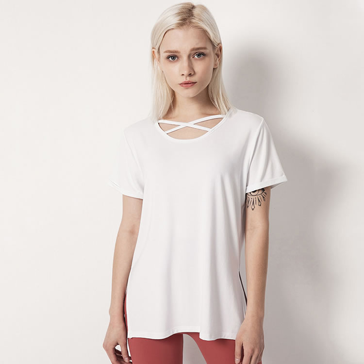 Yoga Clothes Criss-cross Back T-Shirt Loose Casual Short Sleeve Breathable Quick-Drying Fitness Sportswear