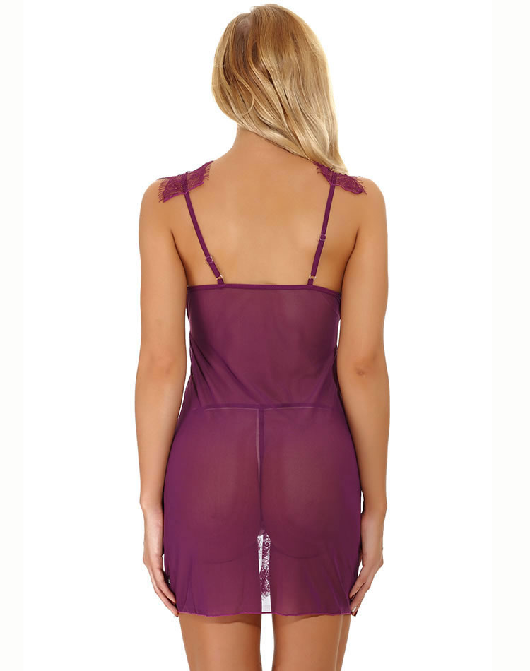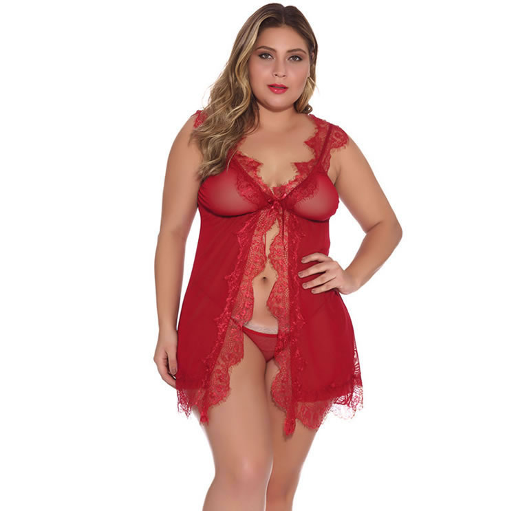Dare to divulge all your dirty secrets in this sexy babydoll set featuring sheer lace cups with a scalloped trim, adjustable spaghetti straps with lace detailing, a vented open bodice, and a matching thong panty.